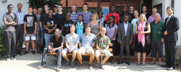 Kenya Embassy official, Mr. Wilfred Wamela (fourth from the right, second row) and Mr. Jonas Merzbacher, the Mayor of Bamberg in the State of Bavaria (right) in a group photo with Kenyan and German youths.