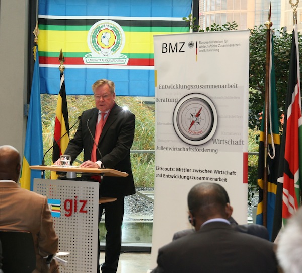Mr. Hans-Jürgen Beerfeltz, the State Secretary in the Federal Ministry for Economic Cooperation and Development (BMZ), giving his speech at the EAC Investment Forum.