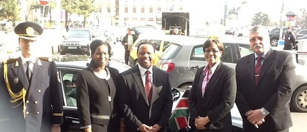 H.E. Amb. Ken Osinde, Mrs. Judith Osinde, Mrs. Rosemary Owino (Minister Counsellor) and the Director of Protocol and Aide of the Republic of Romania after the presentation of Credentials on 13th March, 2013